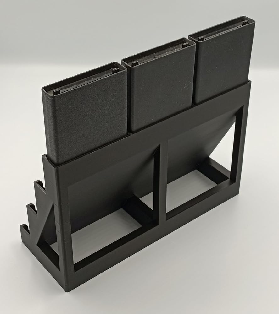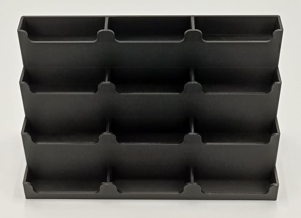 Designed to accommodate 12 games without protectors. May not be suitable for non-standard cartridges. Constructed using ultra-durable PLA material through 3D printing.
