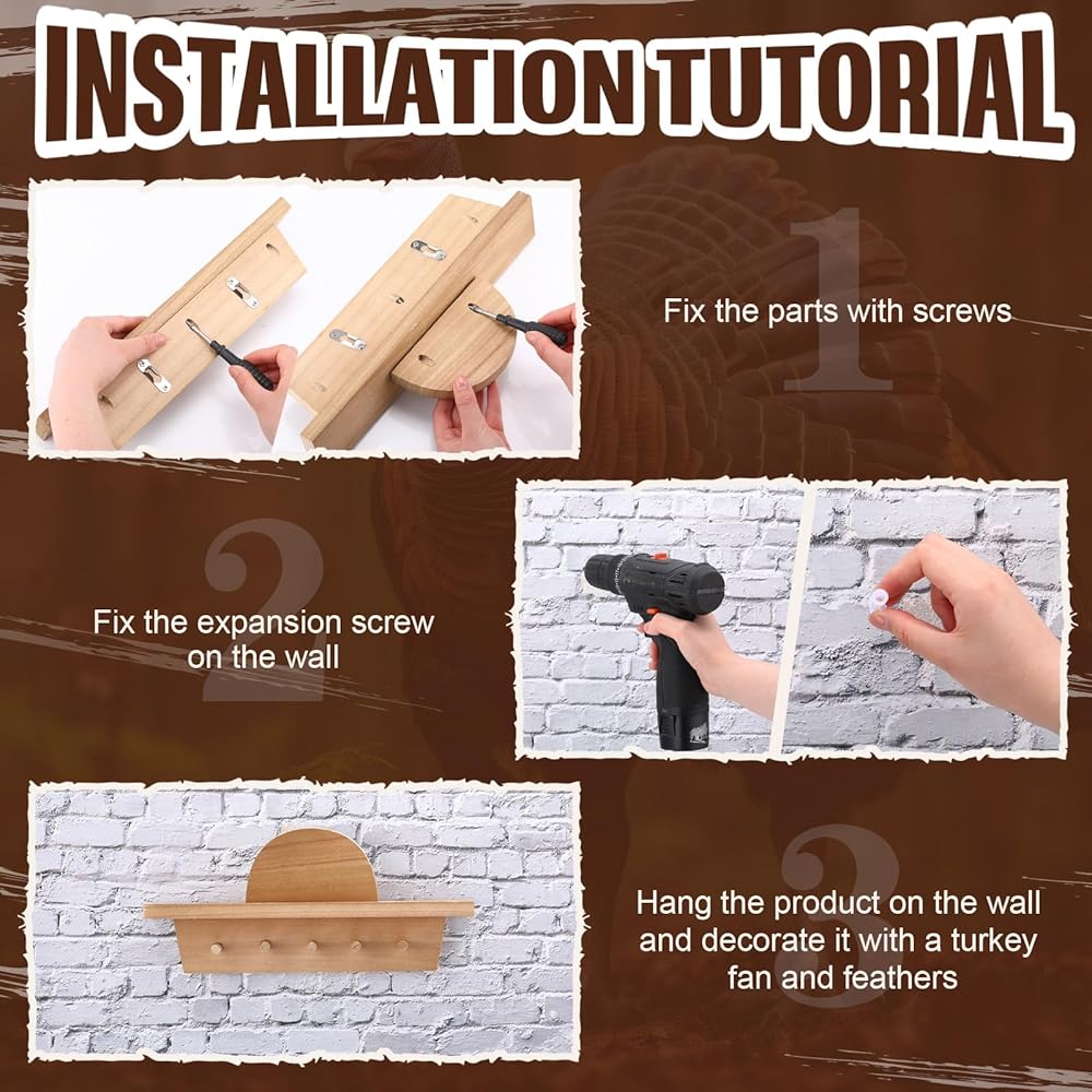 Package includes: 1 pcs turkey fan mount kit, comes with 5 beard display stands