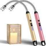 LcFun Electric Candle Lighters USB Rechargeable Lighter with LED Battery Display, 2 Pack Windproof Long Arc Lighter for Grill BBQ Camping Fireplace Stove (Double Black)