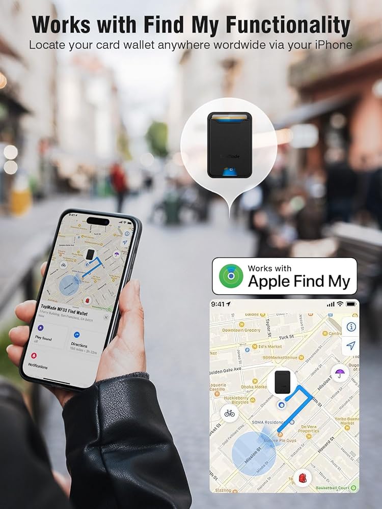 【Works with Apple Find My】This magsafe wallet features Apple-certified Find My functionality. Add the magnetic wallet to the Find My app on your Apple device to check your wallet's real-time location, play audible alerts, receive lost notifications, and set lost modes. (Not available on Android devices).