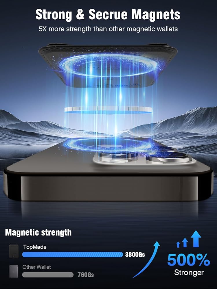 【Super Strong Magnetic Force】The magnetic force of our magnetic wallet card holder is up to 3800 Gauss, 6x stronger than the official mag safe wallet. With built-in card clip to lock your credit cards, ID cards and cash tightly of the magnetic wallet on the back of phone firmly.