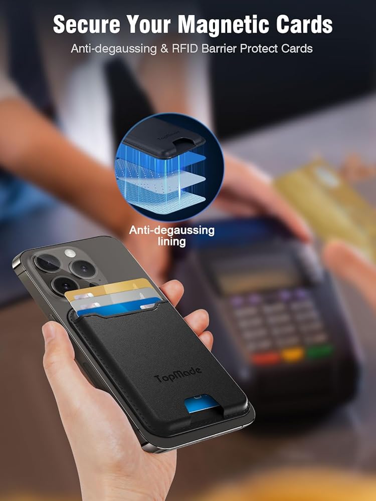 【RFID/NFC Protection】MagSafe wallet card holder is equipped with advanced RDIF blocking technology, keeping your credit cards safe from unauthorized scanners and provides degauss protection for your cards to prevent demagnetization.