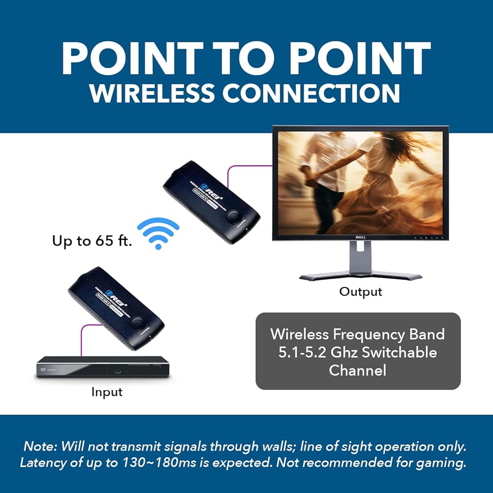 Extend Full Ultra HD 1080p Ultra HD Signal upto 60 Feet Wirelessly. Will not Transmit through Walls, Direct Signal Only. Wireless Frequency Band 5.1-5.2 Ghz Switchable Channel. It enables you to enjoy high-quality, noise-free, and crystal-clear images on a large screen, with impeccable audio.