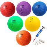 NOTE: The set includes 6 of 8.5" deflated playground balls, an air pump with a flexible extension hose, and 3 needles.