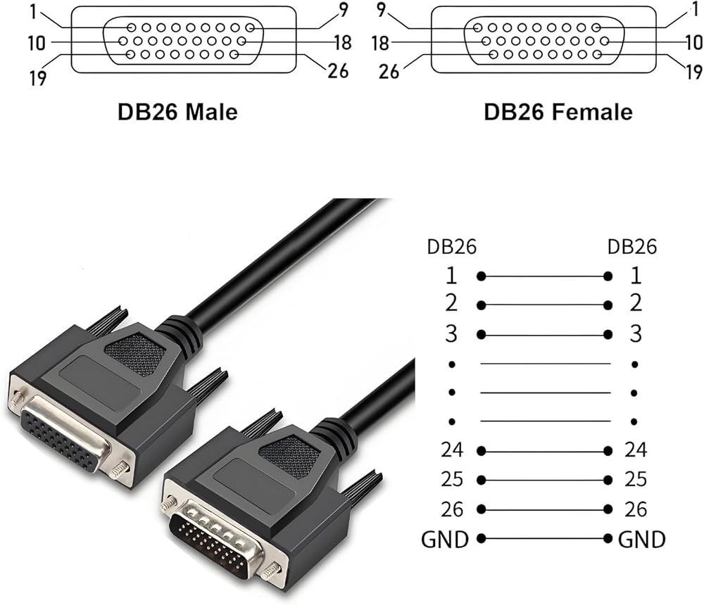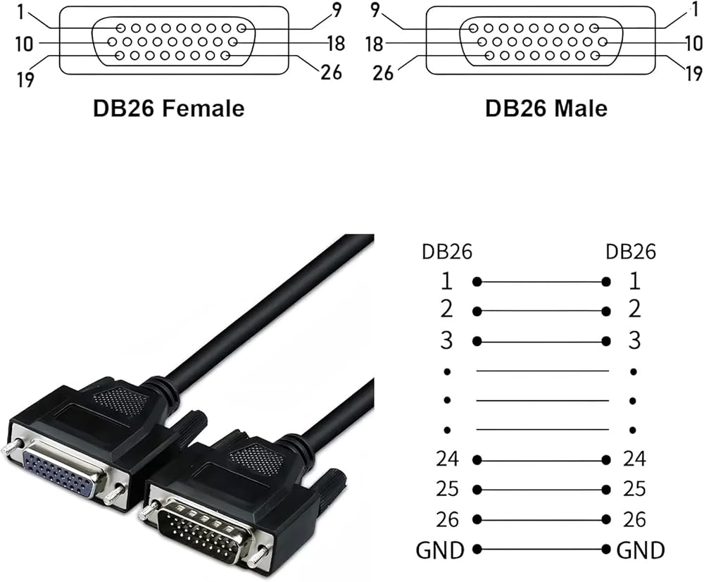 6.56FT RS232 28AWG DB26 Male to Female Serial Extension Cable, 3Row 26Pin Straight Through Cord Connector for Automatic Control Equipment CNC Computers