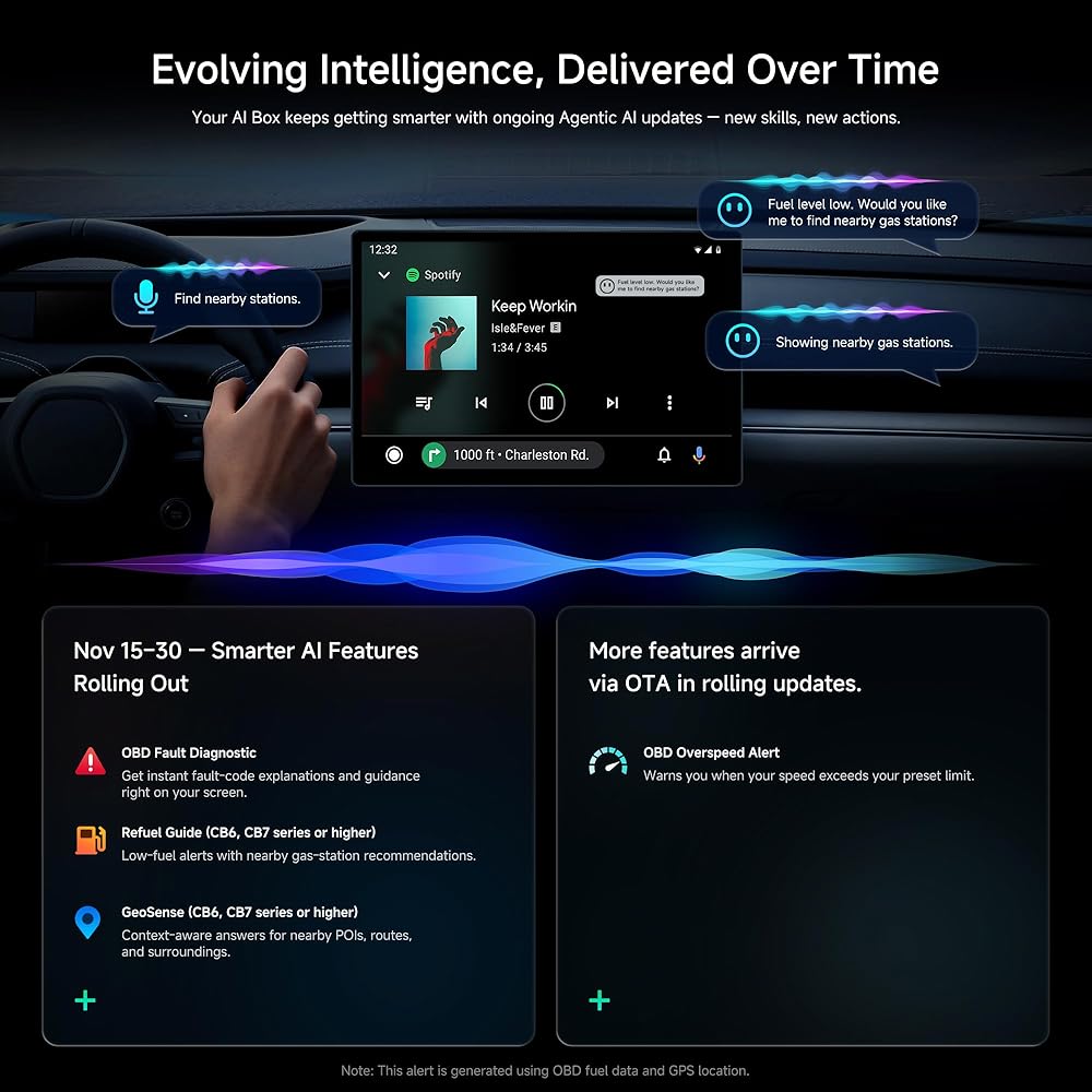 Rich Pre-installed Software: Pre-installed with custom software like DriveChat (ChatGPT-powered voice assistant), TrackHU GPS tracker, Bluetooth OBD diagnostic app, and car Bluetooth ambient light app, offering extensive expandability