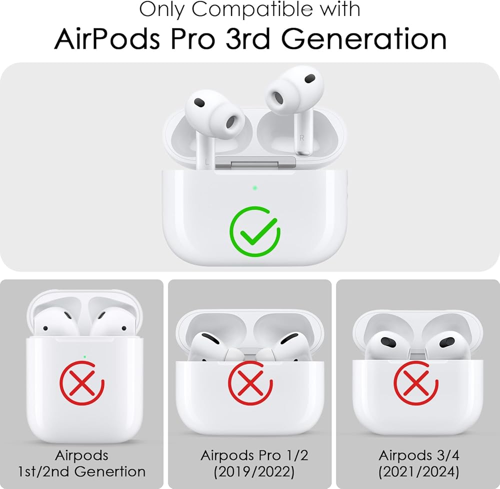 Case for Apple Airpods iPods Pro 3 Cases Cover Clear 2025 Cute Women, VISOOM Cute Air Pods Pro3 Case Clear Transparent Airpods iPods Pro 3rd Gen Protective Cases with Keychain/Lock/Cleaning Kit-Black