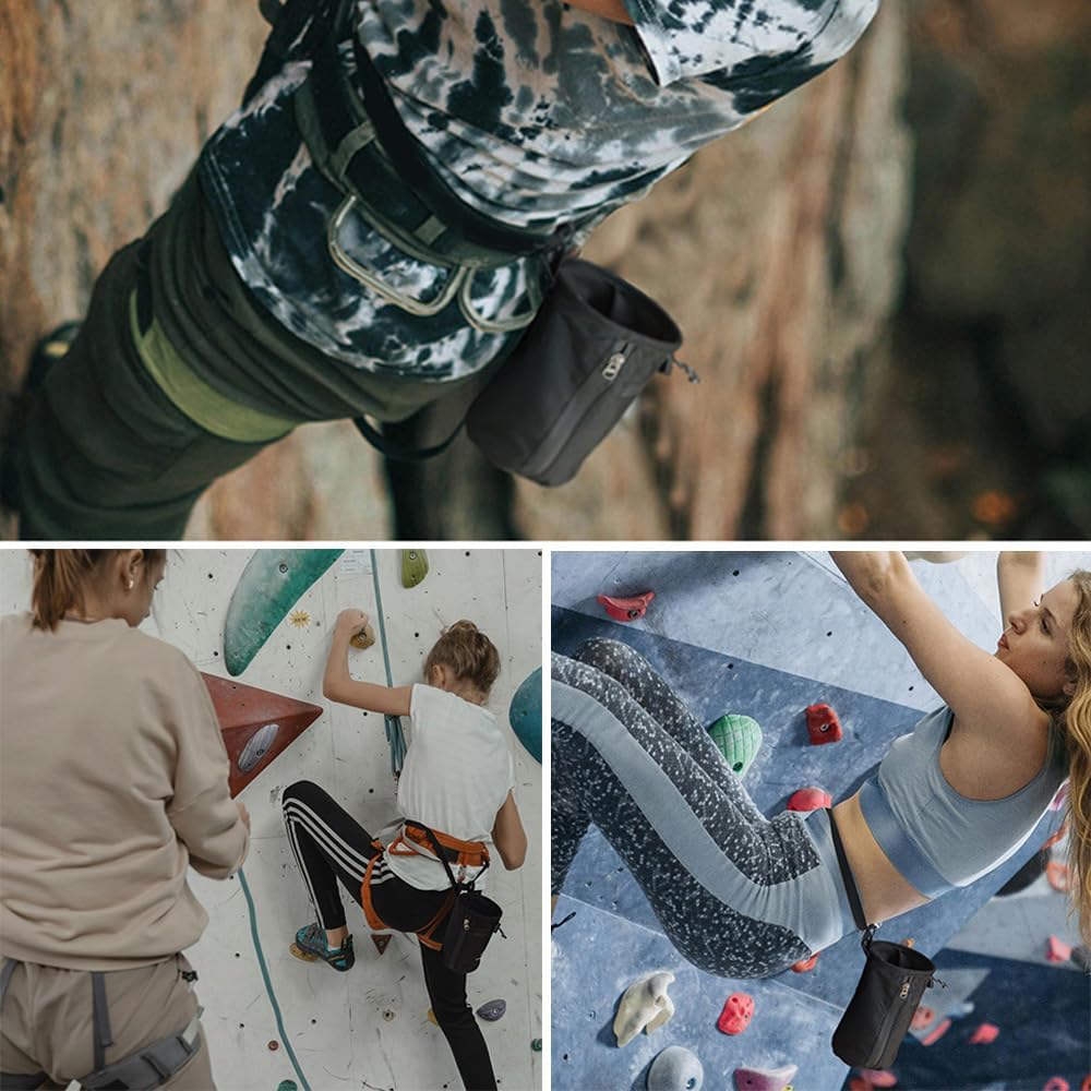 2.[Multi-pocket design] The double storage pockets on the front and side provide more storage options for climbers. Easily classify and store chalk, keys, small tools or other personal items for easy access.