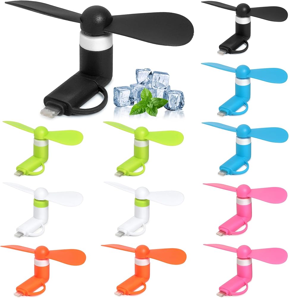 Mini Cell Phone Fan 12 Pack, 2-in-1 Fan Compatible for iPhone, iPad, Android Smartphone,Tablet Fit for Type C/Lightning Port Colorful and Powerful Cell Phone Summer Accessories