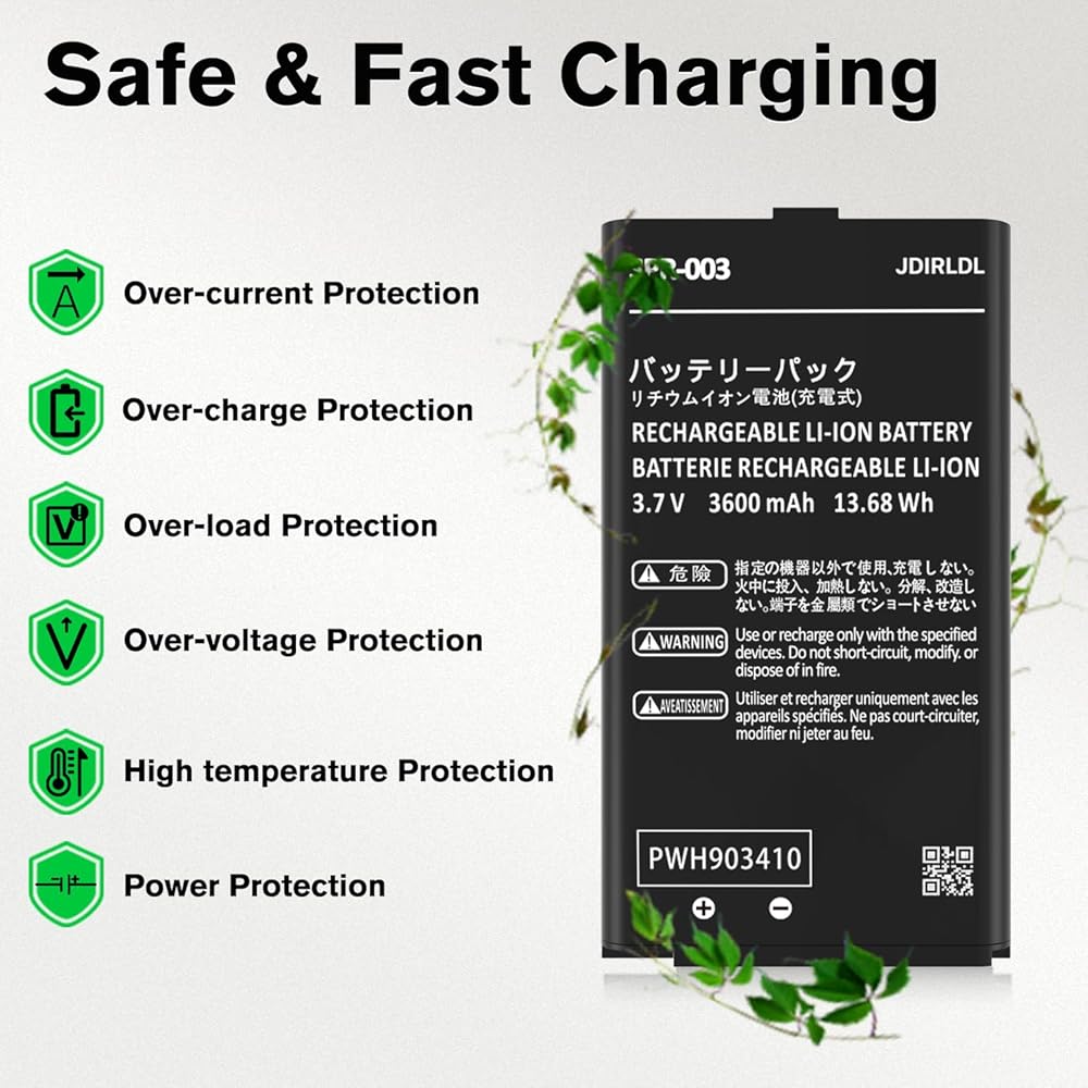 [3600mAh High Capacity] : Newly upgraded large capacity is 3600mAh has more power than Other Battery, brand new 0 cycle, built to last up to 1500 charging cycles to Give your game console a whole new life.