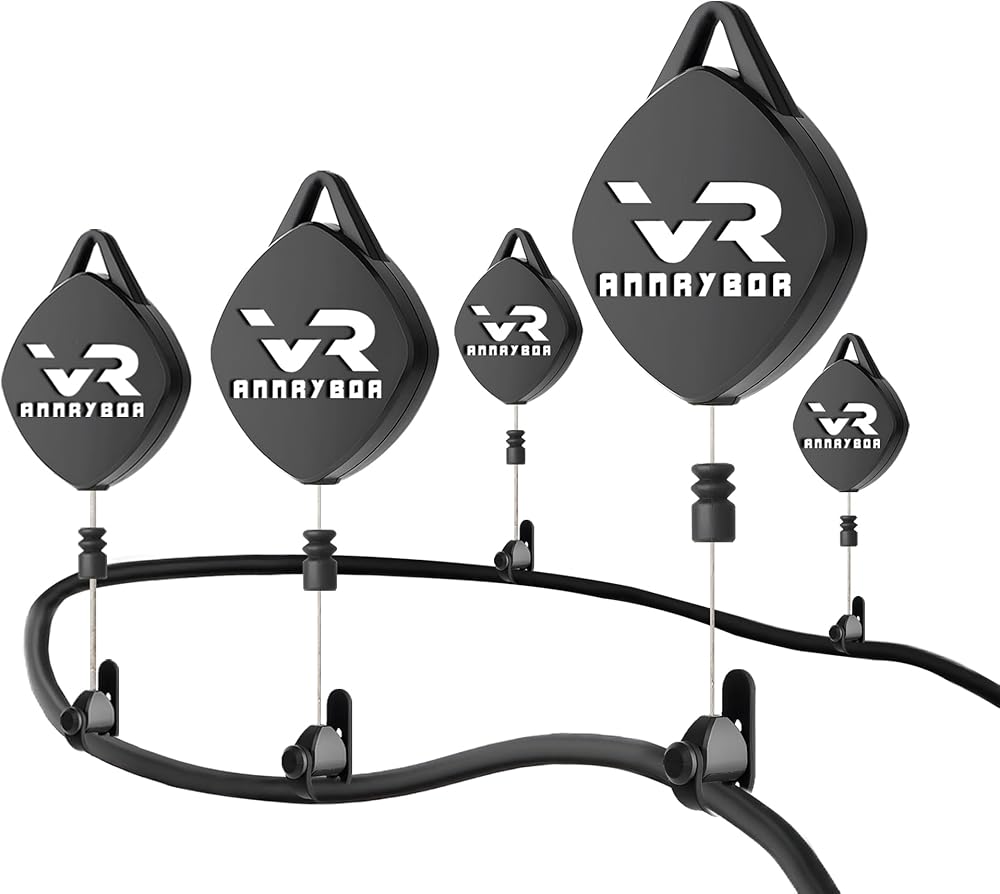 • Tangle-Free Rotation Tech:Patented swivel joints rotate smoother than your in-game turns! The 8-bearing pulley head keeps cables untwisted even after 50 consecutive spins in Gorilla Tag. Reinforced nylon clamps prevent cable slippage during Boneworks climbing sessions.