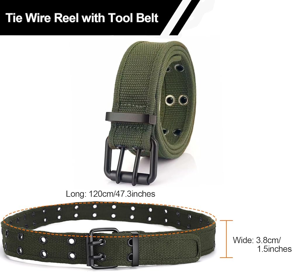 【Convenient Matching Tool Belt】The included canvas tool belt features a double grommet design and metal buckle, perfectly matching the wire reel for hands-free use. Simply attach the reel to your belt for effortless operation, allowing you to focus on the job without interruptions