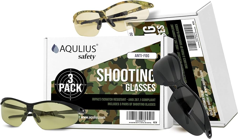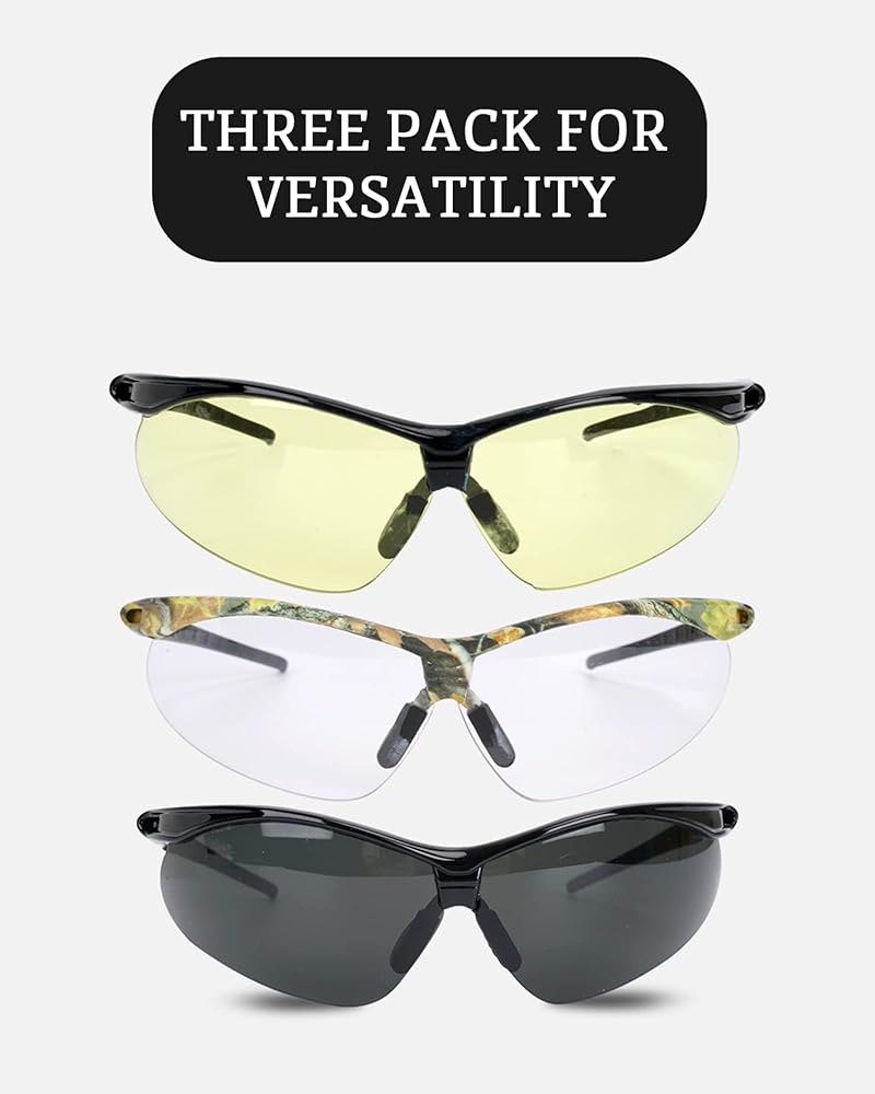 THREE PACK TACTICAL GLASSES FOR EYE PROTECTION - Aqulius' clear tactical sunglasses are fit for men and women. These gun eye protection safety goggles provide skeet shooting eye protection and doubles as hunting and construction glasses. Eye Protection for Shooting Range