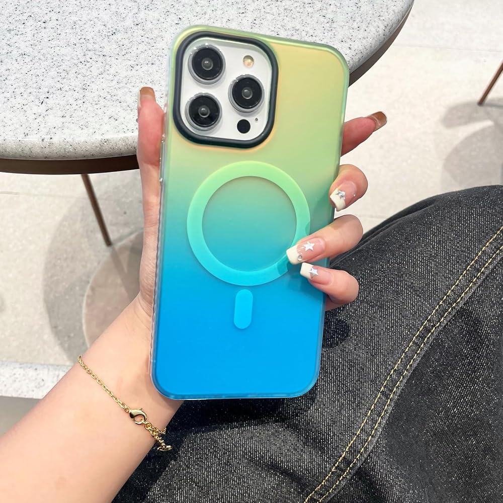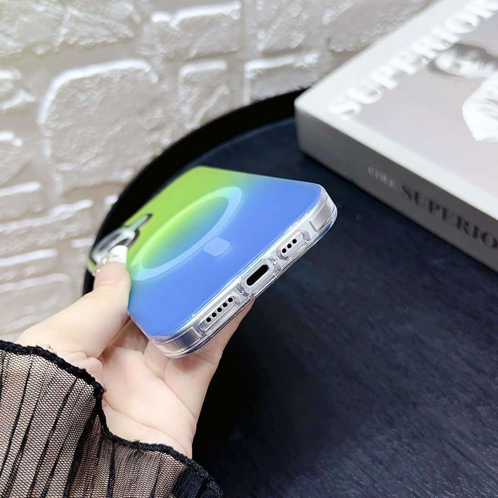 Losin for iPhone 16 Magnetic Case [Compatible with MagSafe] Women Girls Girly Cute Gradient Color Phone Case Slim Shockproof Protective Cover Case for iPhone 16 (Green/Blue)