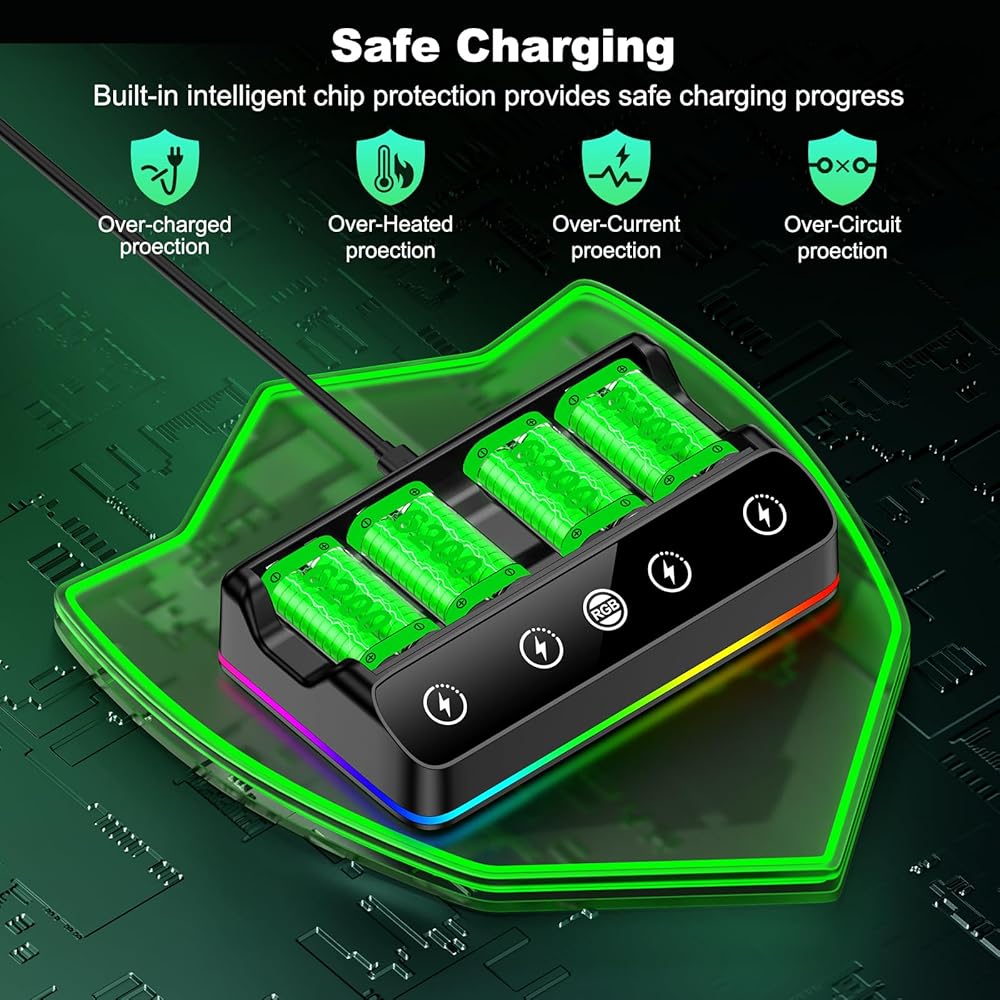 ◆ This Xbox controller battery charger has Over-Charged, Over-Current, Over-Heated, Short-Circuit protection functions, which can extend the battery life and allow the battery to be charged 1000 times without frequent purchases. The battery protection function ensures the safety of over-night charging.