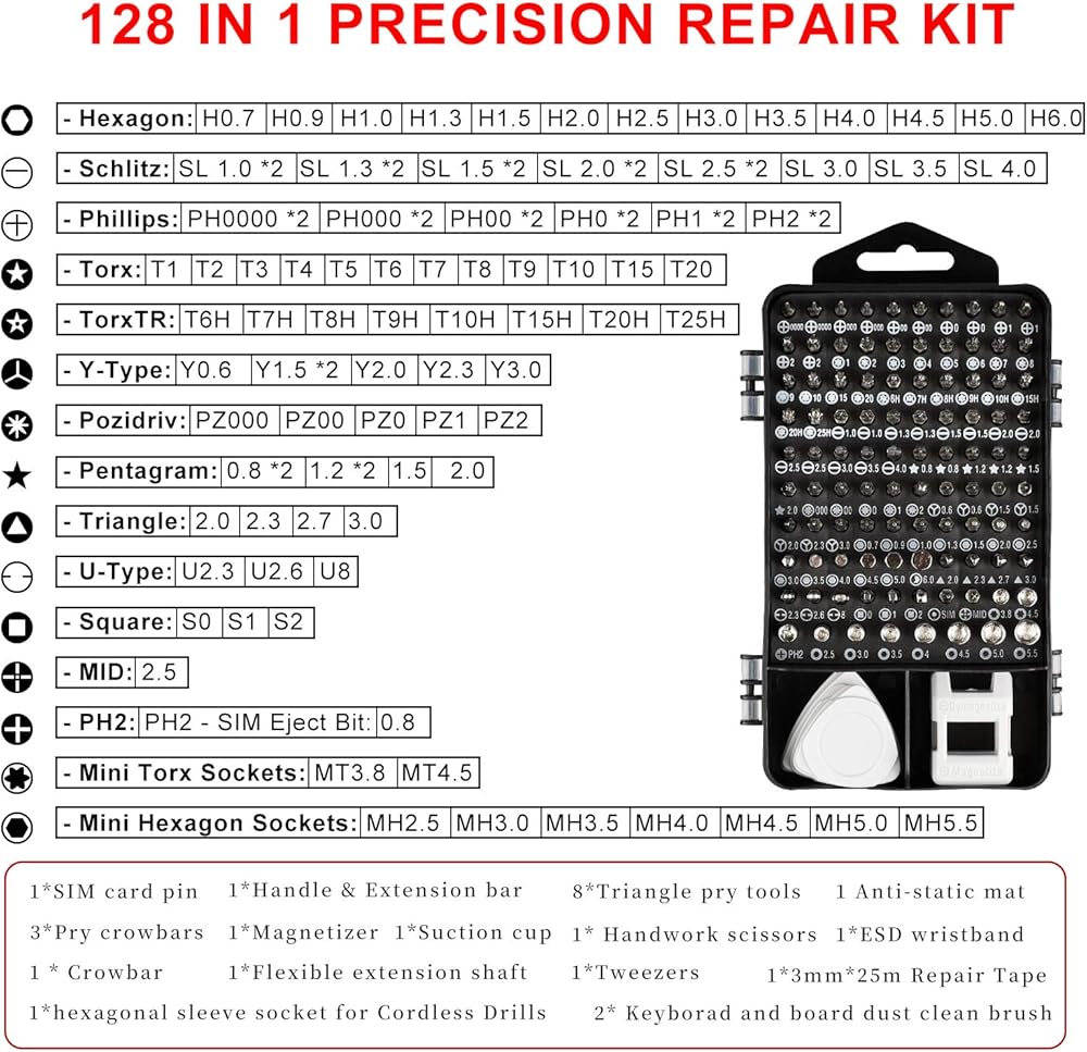 - COMPREHENSIVE KIT: Professional-grade precision screwdriver set with multiple bits designed for detailed electronics repair work