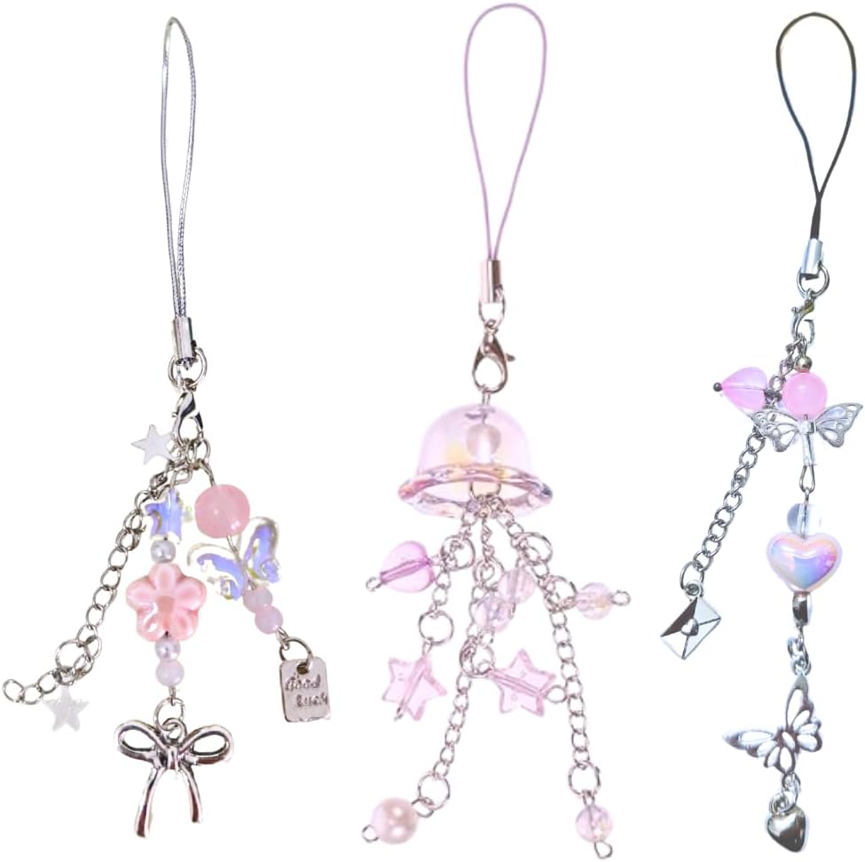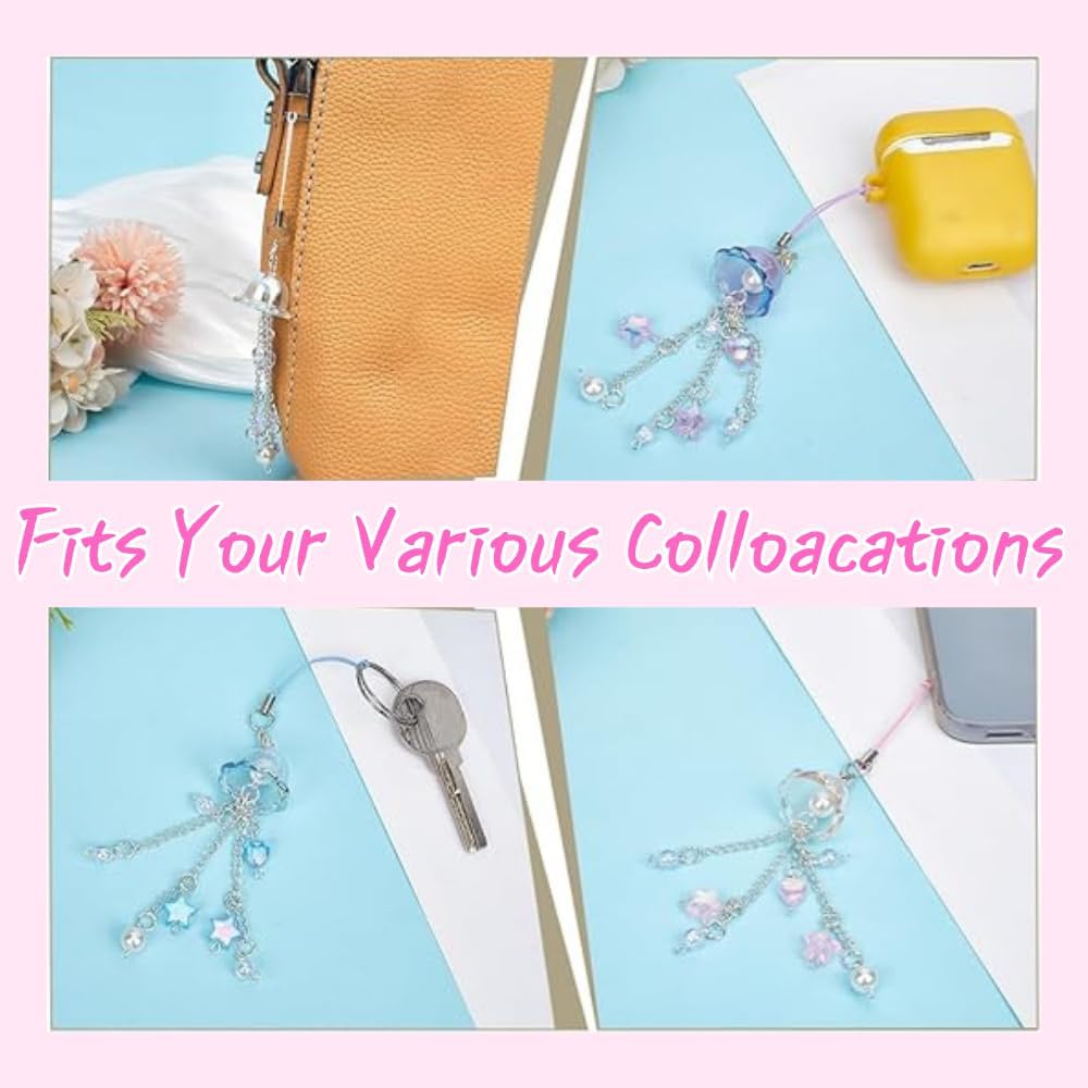 the charms for phone case aren't just for phones; The universal compatibility and design of the beaded phone strap means you can use it on items like shoulder bags, cameras, wallets, keychains,car keys, and other lightweight accessoriesuch