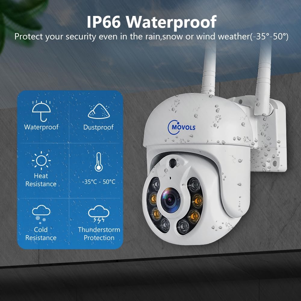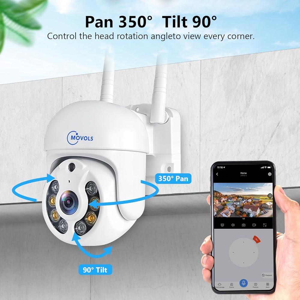 MOVOLS 2.5K 10CH Wireless PTZ Security Camera System,8 x 5MP WiFi Auto Track Camera Outdoor,Color Night Vision,5X Digital Zoom,AI Pet Human Vehicle Detection,Light & Siren Alarm,2TB HDD, 24/7 Record