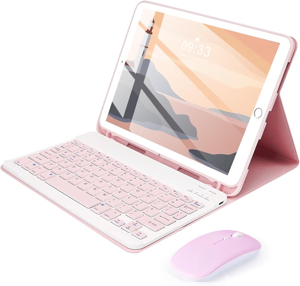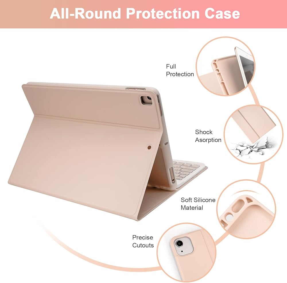 SOPPY Bluetooth Keyboard Case with Mouse for iPad 9th Gen 2021, 8th Gen 2020, 7th Gen 2019 10.2", Air 3 & Pro 10.5", Detachable Wireless Keyboard, Slim Protective Cover, Rechargeable, Pink