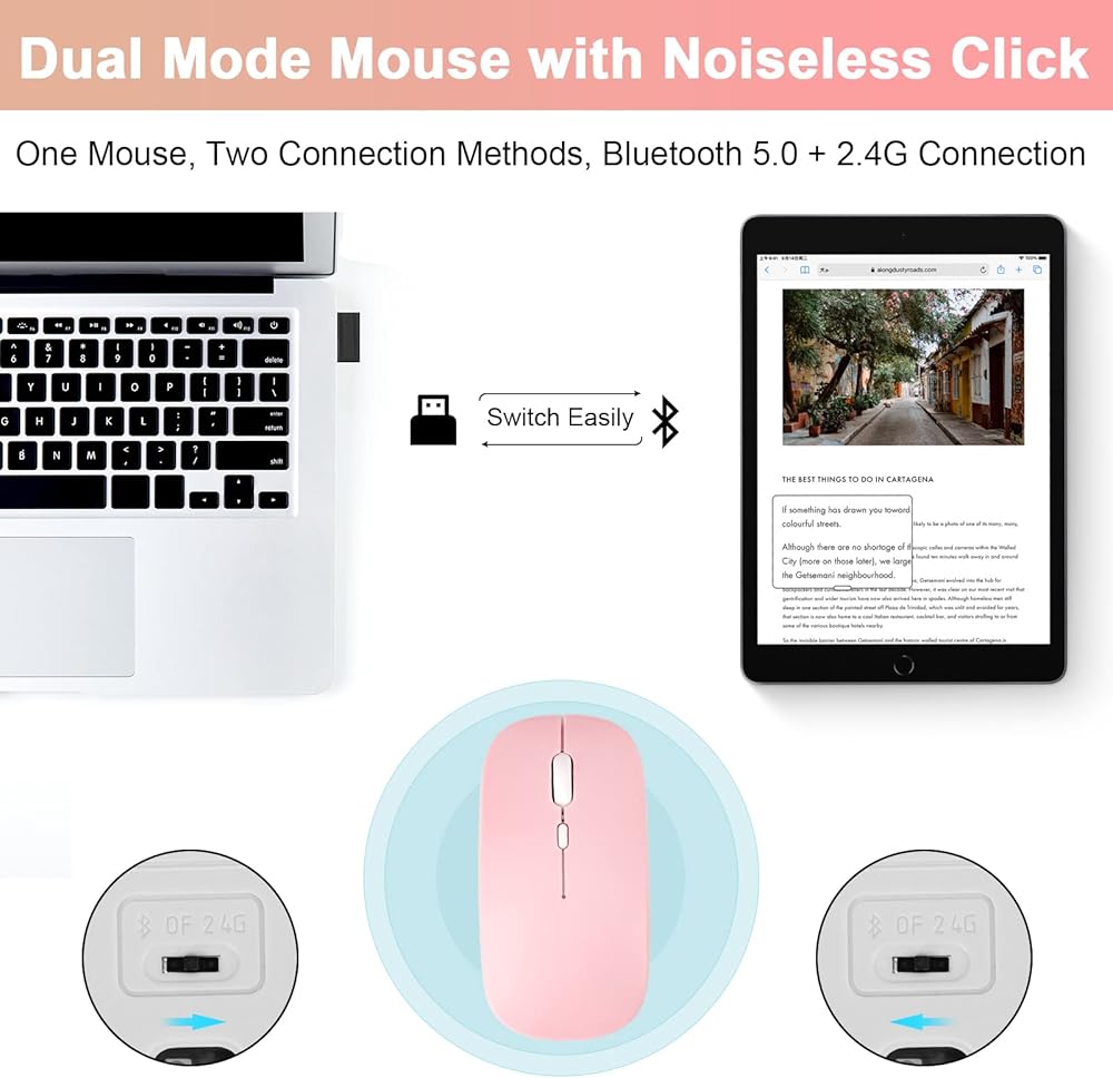 2.4G Slim Wireless Mouse:The slim mini mouse adopts shapely, giving your palm plenty of support and seamlessly fits in your hand, so you can work or play comfortably for long hours.Compact and wireless, it can be taken anywhere you go as it fits easily in your laptop case or in a bag.