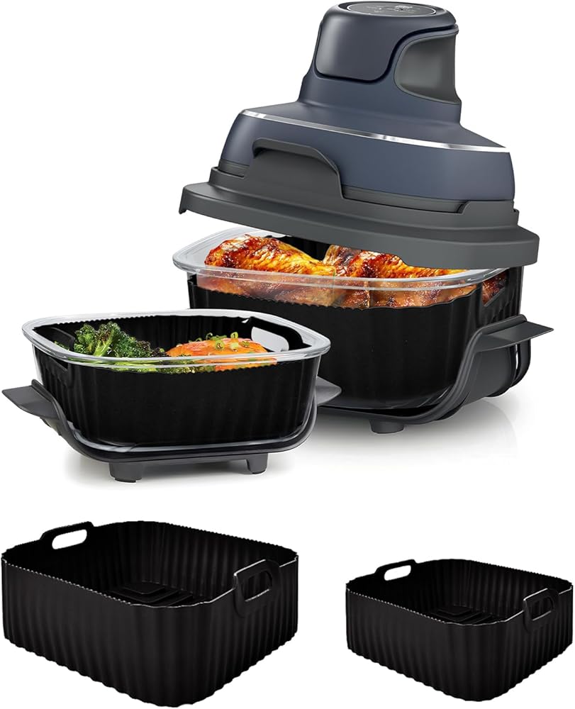 Perfect Fit and Protection for Ninja Crispi FN101GY - Custom-fit for the Ninja Crispi glass air fryer FN101GY/FN101SG/FN101ST, this silicone liner set snugly covers both 4QT and 6-cup containers, enhancing cooking performance and stability. It protects container surfaces from wear and residue, keeping your air fryer clean and in top condition.
