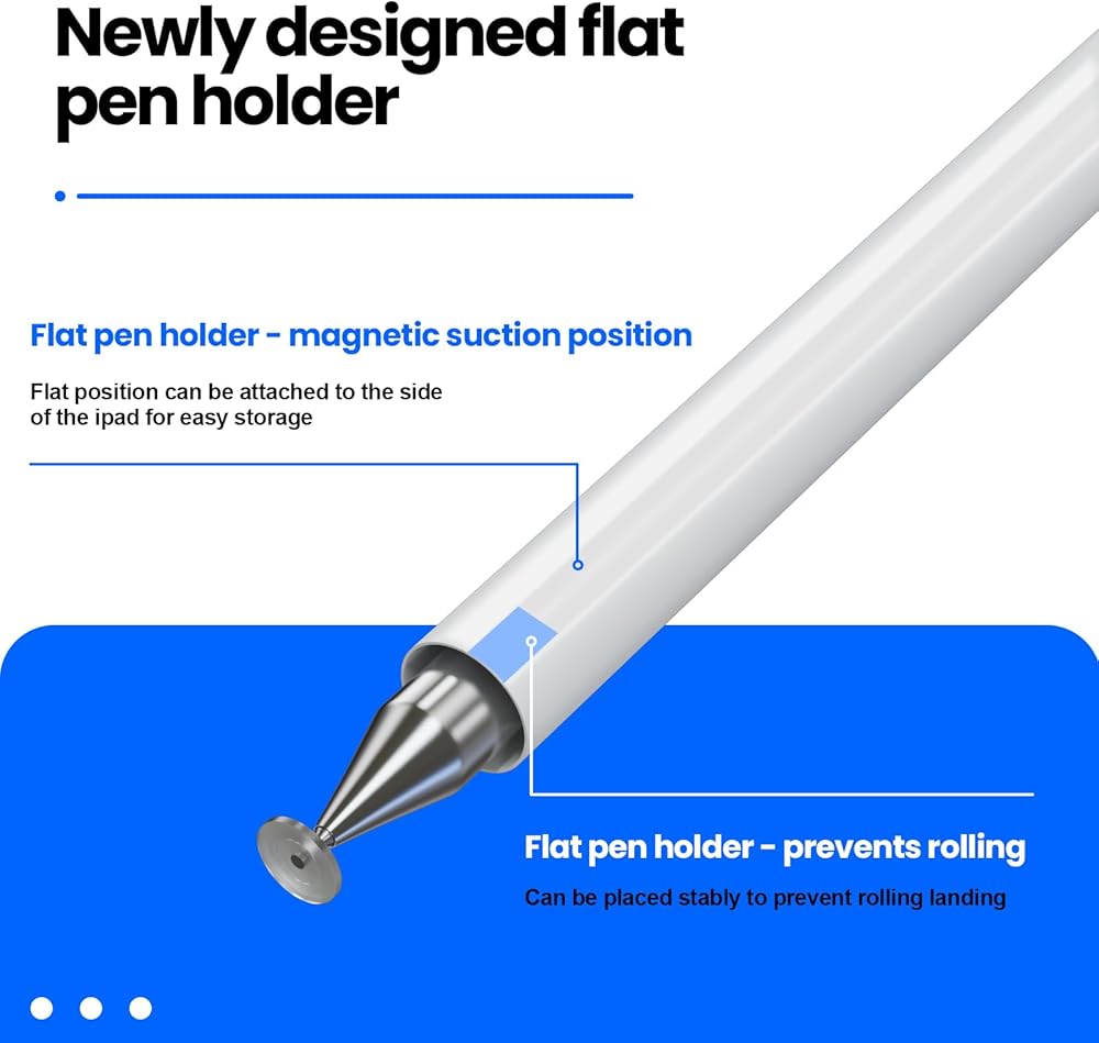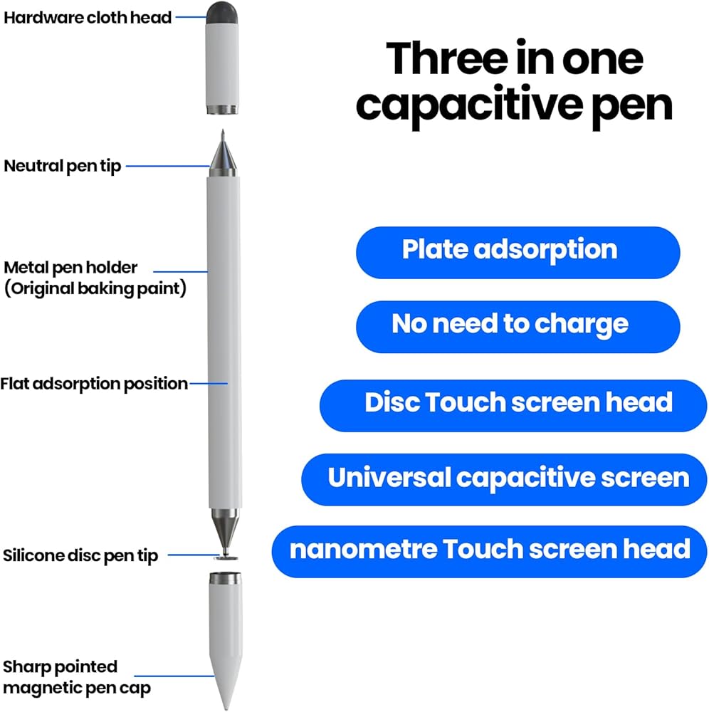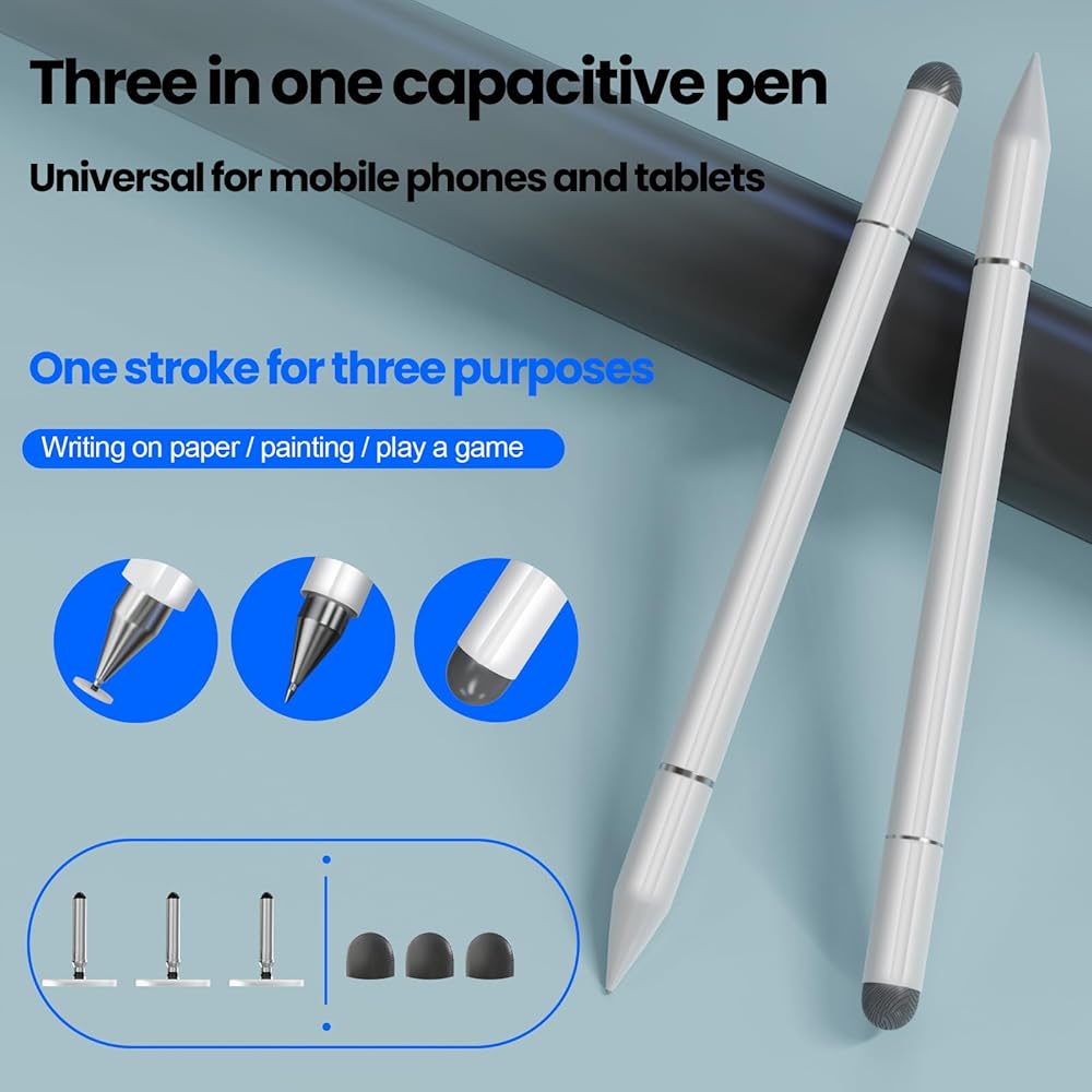 3-IN-1 Design: The stylus has different tips at each end. One end has a silicone disc tip for more precision and sensitivity when taking notes and drawing. On the other end is a durable silver fibre cloth tip and a neutral pen. The silver fibre tip is used for surfing the web or scrolling through websites and protects the screen from fingerprints or smudges, and the neutral pen allows you to write freely on paper