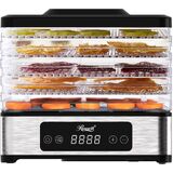 MULTI-LAYER AND ADJUSTABLE TRAYS - This Food Dehydrator features 5 food-grade adjustable trays that allow you to dry different foods, meat, fruits, and veggies at once. The standard height between the trays is 0.8 inches, but you can raise each to 1.5 inches by 180° horizontal rotation – perfect for thick-cut ingredients.