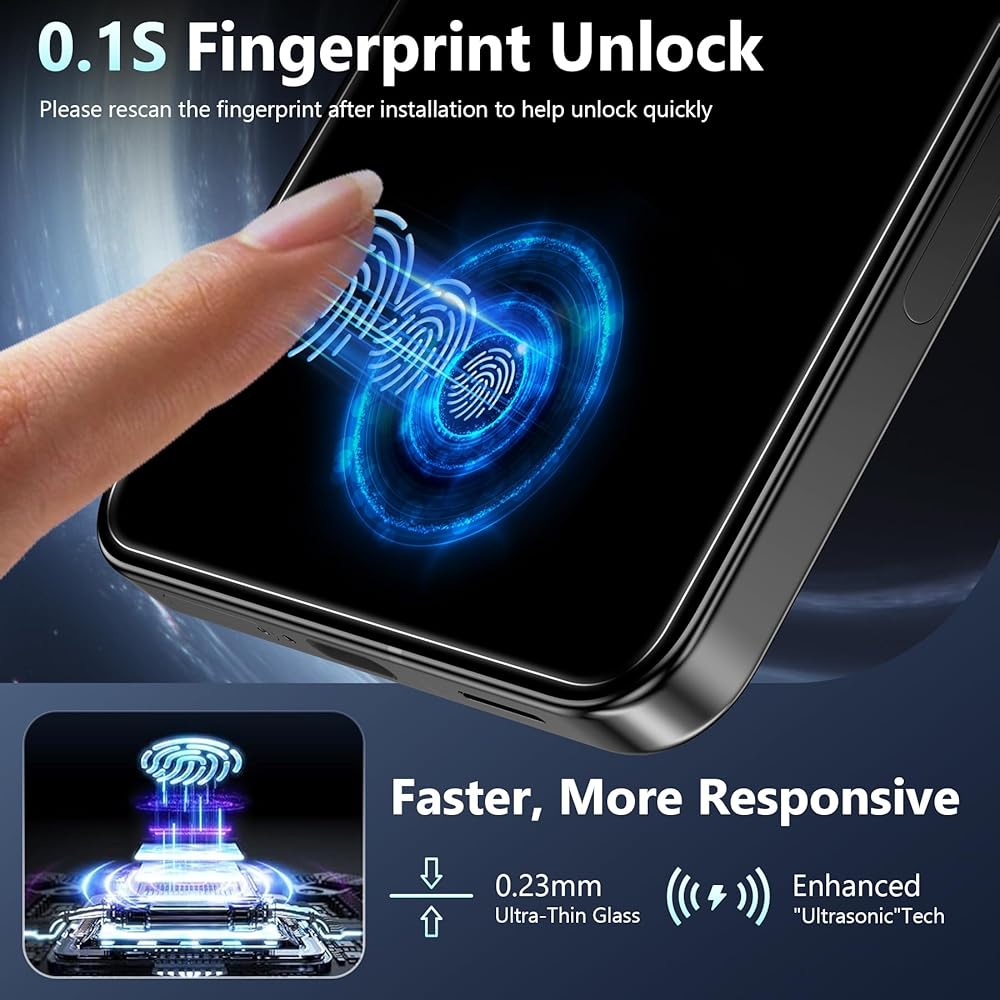 【0.1 Seconds unlock】With this S25 ultra screen protector privacy, you can easily access your phone through fingerprint recognition, simply re-enter your new fingerprint after installing the privacy screen protector and your phone will unlock in 0.1 seconds.