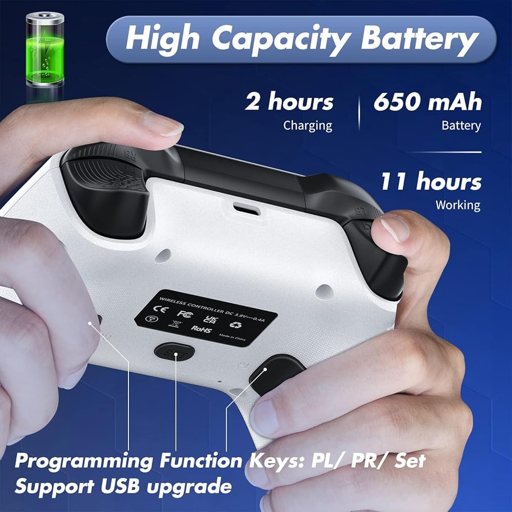 🔥【Large Capacity Battery】Wireless ps4 controller built-in 1200 mAh rechargeable battery, it takes 2 hours to fully charge for 15 hours of playtime.