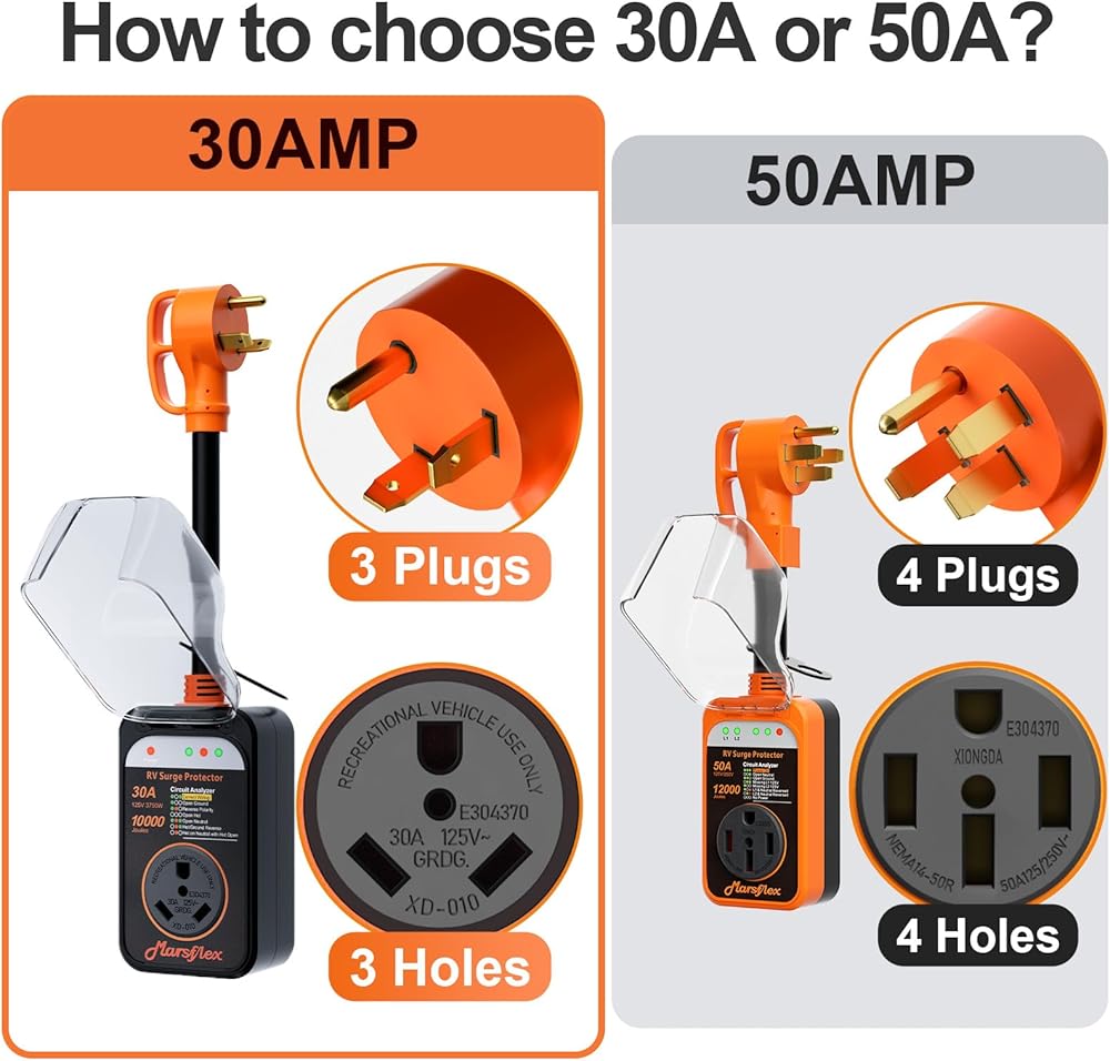 RV Surge Protector: Marsflex 30-amp RV Surge Protector enhances the safety of your RV's electrical system. It safeguards your equipment from hazardous voltage fluctuations and power surges due to thunderstorms or lightning strikes. Marsflex 30amp RV surge protector is a must-have for RVs, travel trailers, and motorhomes.