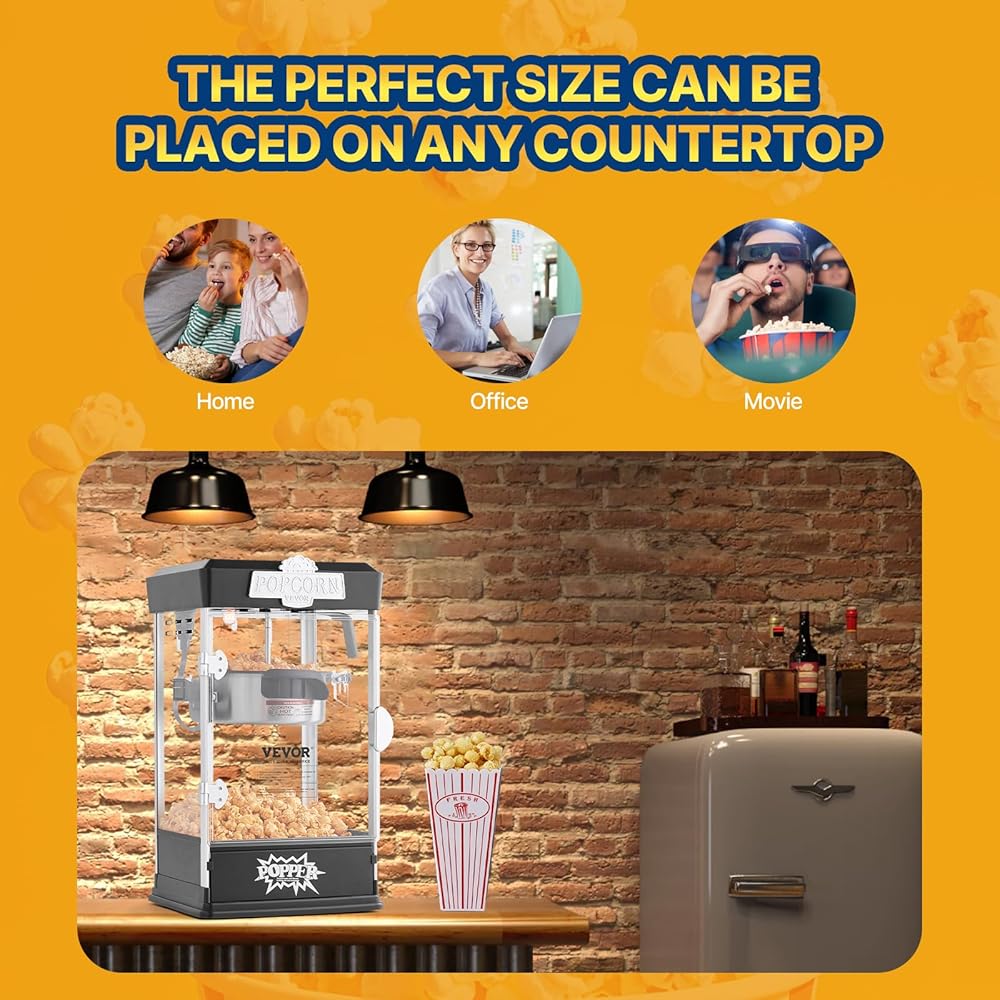 High Output for Small Machines: This commercial popcorn machine has a 4 oz capacity and can produce 1.5 gallons of popcorn per batch, catering to busy family needs. The kettle preheats in just a few minutes, ready to satisfy sports fans, festival goers, and party guests with plenty to eat.