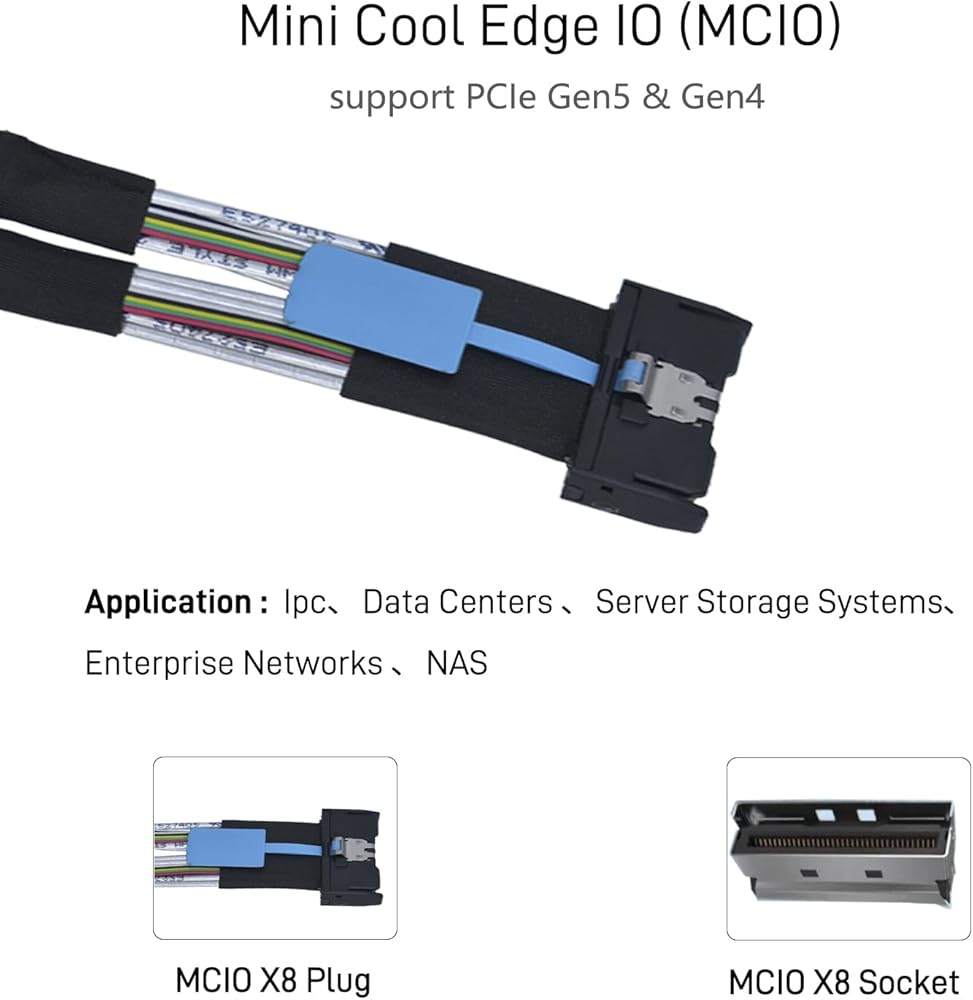BLAZING SPEED UNLEASHED: Feel the excitement of super-fast data transfer with this MCIO x8 cable's PCIe 4.0 support, featuring an 8-lane, 16 GT/s speed. It's ideal for consumers who need high-speed performance, making their data handling fast and efficient