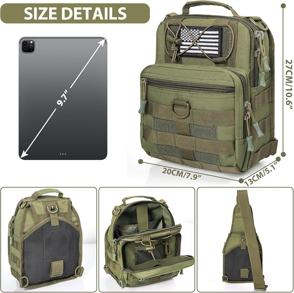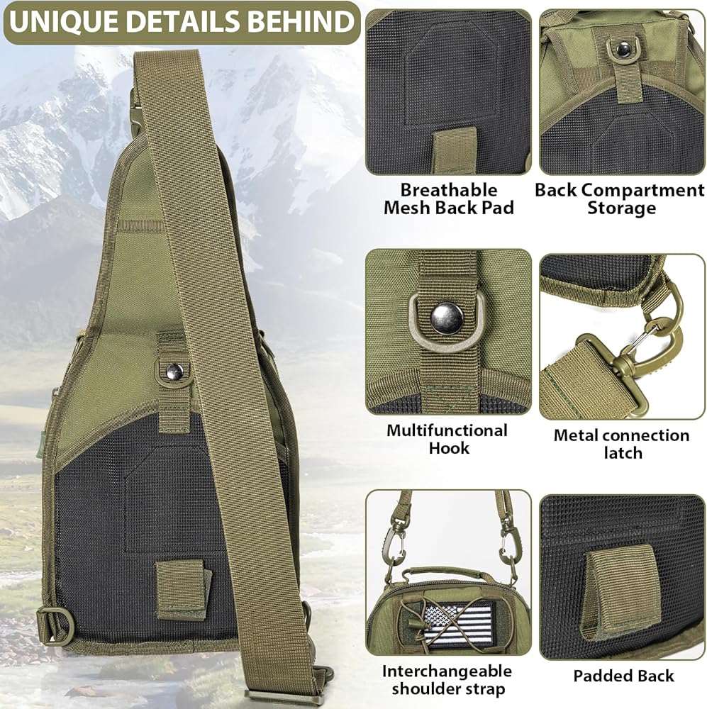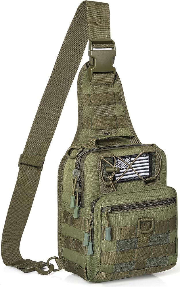 GMAK Tactical Sling Bag for Men, Small Tactical Shoulder Bag Backpack, Outdoor Military Rover Bags Travel Hiking Daypack, Tactical EDC Crossbody Chest Bag Pack for Hiking, Cycling, Hunting, Army Green