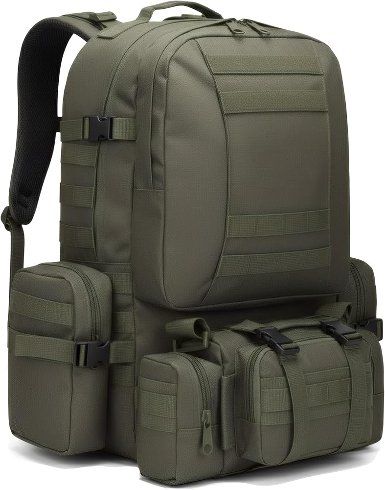 Multiple Pockets & Accessories: This military tactical backpack includes a large main compartment, a detachable front bag as a tactical fanny pack, and two side pouches for first aid. Perfect as a bug out bag with versatile molle attachments