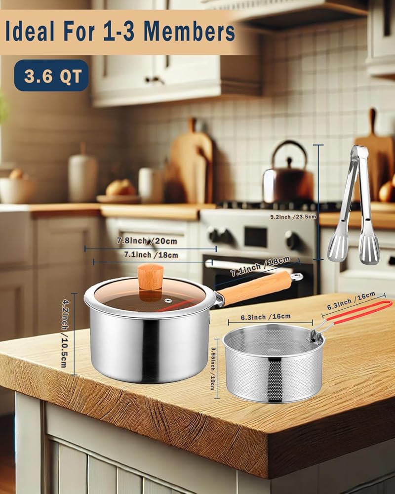 Premium Construction - Our stainless steel oil strainer pot with fry basket is constructed with high-quality 304 stainless steel material, The handles and lid are made of wood,ensuring durability and long-lasting performance in various cooking environments. The sturdy construction allows for even and fast heat conduction, providing an efficient cooking experience.