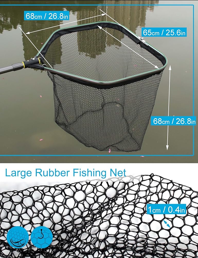 Large Rubber Fishing Net: Rubber coated construction, do not harm fish and prevent hook snagging, making the rubber fishing net gentle enough for catch and release.