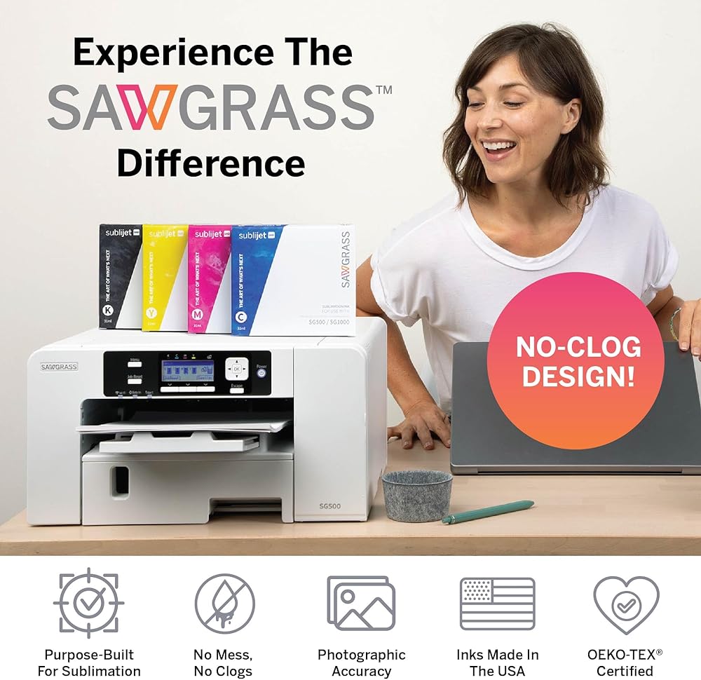 Professional-Grade Print Quality: The Sawgrass SG500 delivers professional-grade sublimation printing, perfect for creating custom t-shirts, drinkware, signage, and promotional products; Ideal for small businesses and home-based entrepreneurs who demand vibrant, high-definition results