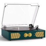 Vinyl Record Player with Built-in Speakers, Vintage 3-Speed Turntable, Bass/Treble Control, Headphone Jack, RCA/AUX Outputs, Belt-Driven LP Player, Green