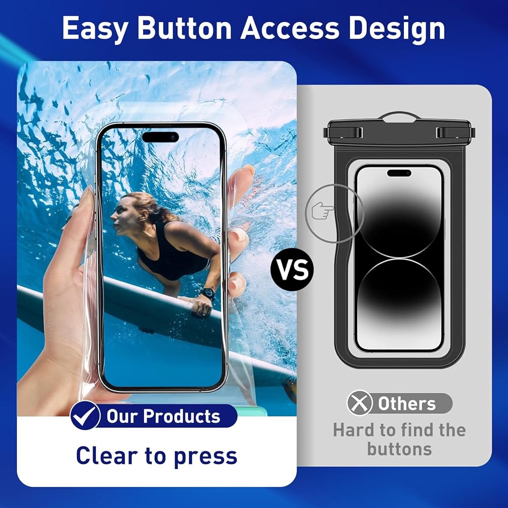 IPX8 Waterproof Protection: Certified IPX8 waterproof rating, protecting your phone from water, dust, and sand. Suitable for beach, pool, and outdoor activities. Fits phones up to 7 inches