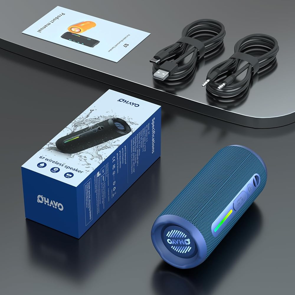 【Portable Speaker&Powerful Bass】OHAYO bluetooth speakers are small in size, with a 5200mAh battery capacity.The portable bluetooth speaker features an in-house tuned digital signal processor that analyzes low frequencies to intensify the song's bass in real-time.
