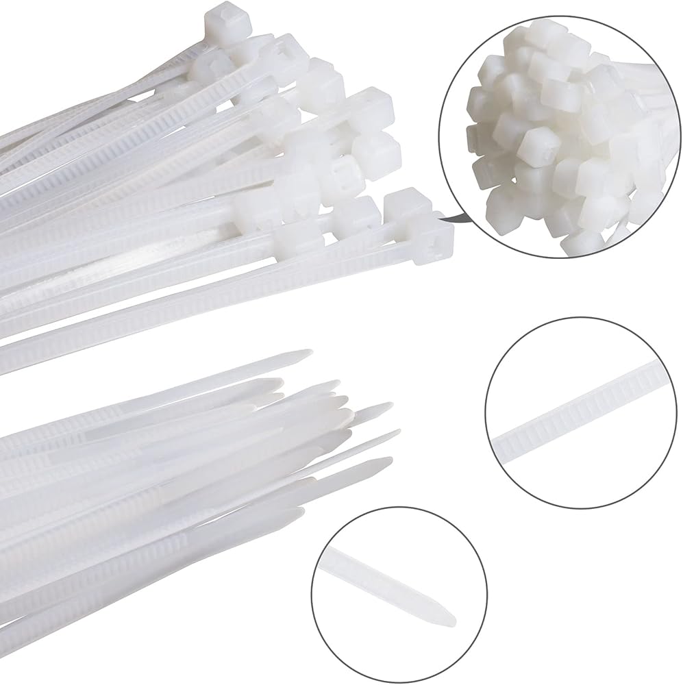 【Easy to Use】White Zip Ties is smooth, the tail is easy to insert into the hole of the head, self-locking design, non-slip and durable