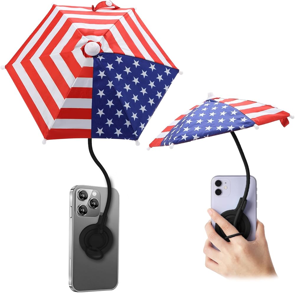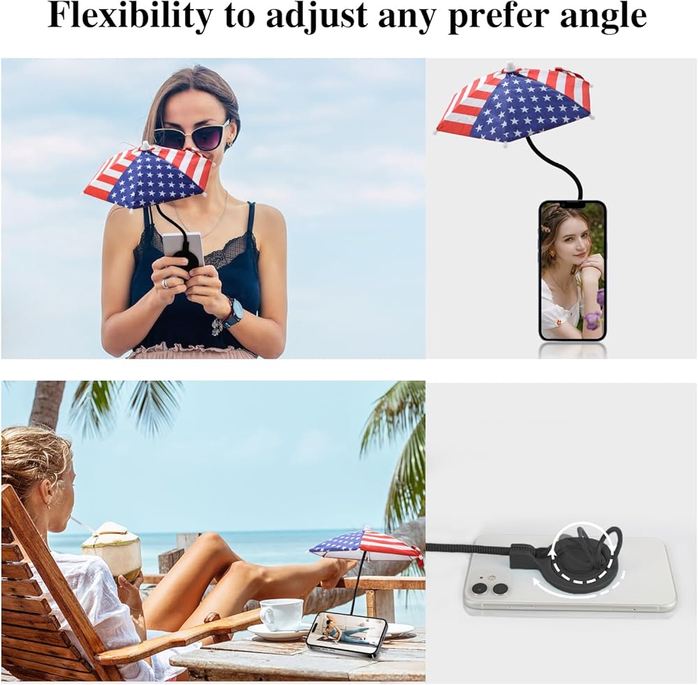 【Flexible Angle Adjust】: This phone umbrella features the unique upgraded design flexible shaft, which not only allows you to adjust the height of the umbrella up and down, but also 360° angle adjustment. Compared with other cell phone umbrellas, ours can be flexed as needed for more shade.