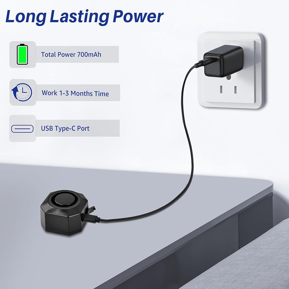 【Versatile Adjustment】This alarm system offers 7 sensitivity levels for precise customization, ensuring optimal protection and minimizing false alarms. Choose from 3 adjustable volume settings, with the highest reaching 110 dB. You can also select from 3 alarm tones to suit your preference.