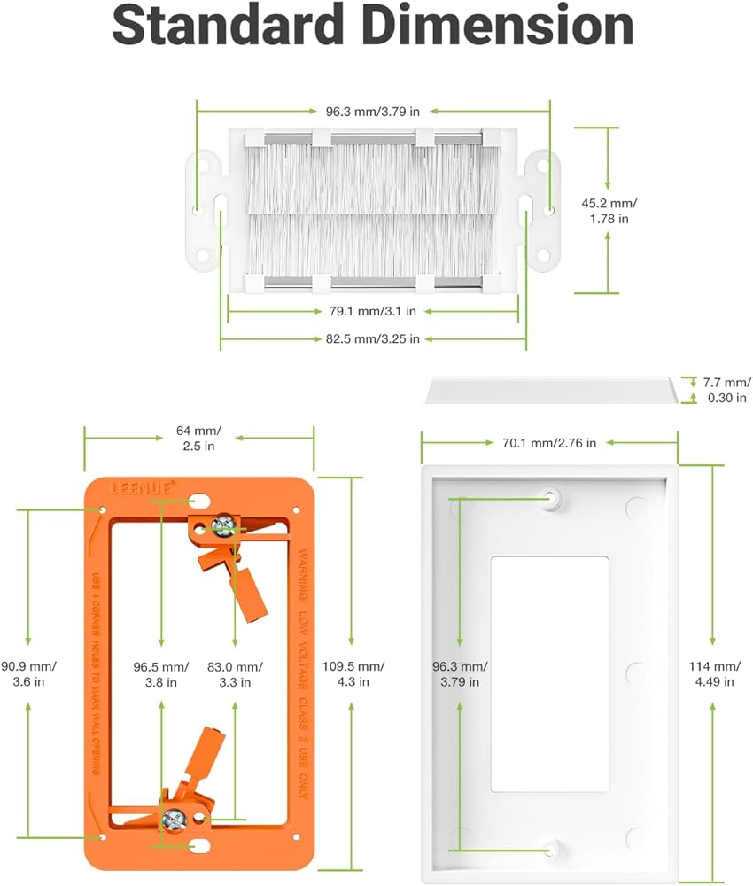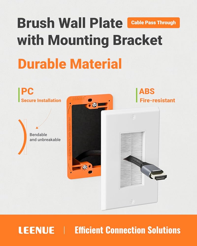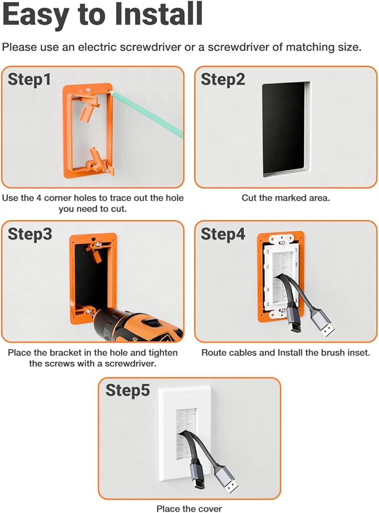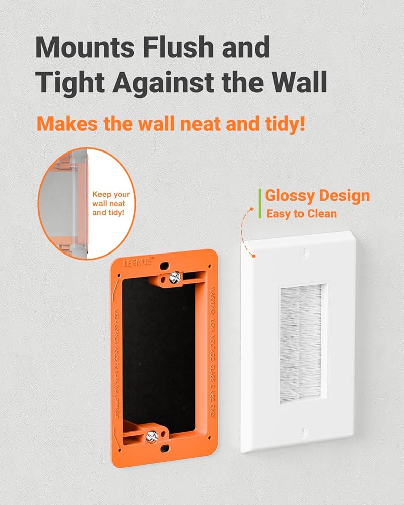 INSTALLATION ONLY TAKES A FEW MINUTES: The in wall cable management is very simple to install, even for first-time installers. The corners have positioning holes, quickly marking the outline of the opening. You just need to insert the brush into the casing and place it on the wall. We also provide newly designed screws, compatible with Phillips and flathead tools, to facilitate your installation.