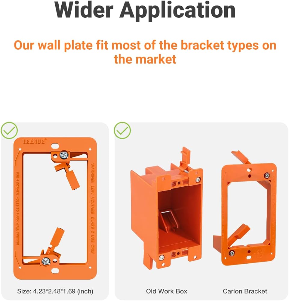 PACKAGE CONTENTS: 6 x 1-Gang white Brush Wall Plates + 6 x low-voltage orange mounting brackets + 24 x screws. 18 months warranty for any quality issues; please contact us if you have any questions, and we will do our best to resolve them within 24 hours.