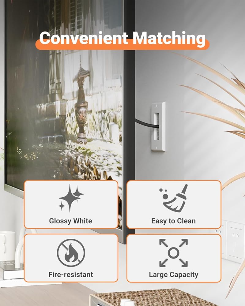 PROTECT YOUR SAFETY: The wall cord pass through plates are made of durable ABS material, heat-resistant, and flame retardant, ensuring safe and worry-free use. The panel surface is smooth, resistant to dirt, and easy to clean.