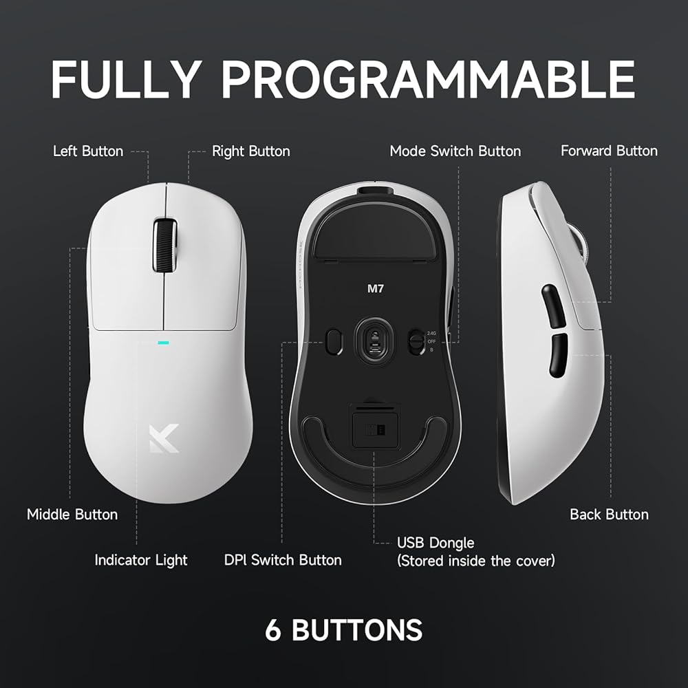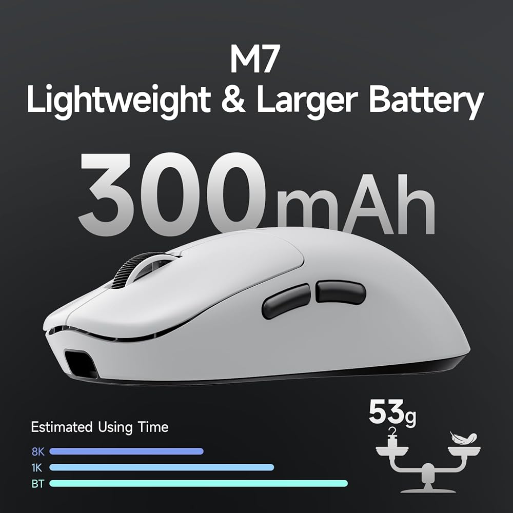 【Dual 8K Polling Rate】The M7 model features wired 1K and wireless 8K connectivity, while the M7 Pro includes dual-mode 8K options. This lightning-fast polling rate of just 0.125ms drastically reduces latency, providing enhanced precision and control during competitive gameplay.