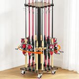 【360° Rotating Base & 16-Rod Capacity】 Organize up to 16 fishing rods and combos effortlessly with the smooth-rotation design, perfect for quick access in garages, boats, or trucks.