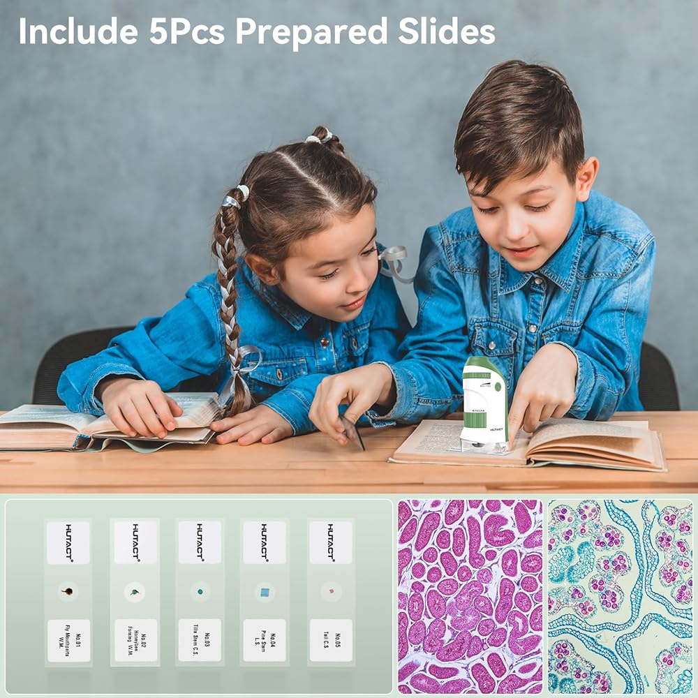 Comes with Slides for Easy Learning: The pocket lab kit includes 5 sample slides with items like leaves and bugs, providing children with an easy and engaging introduction to biology experiments.