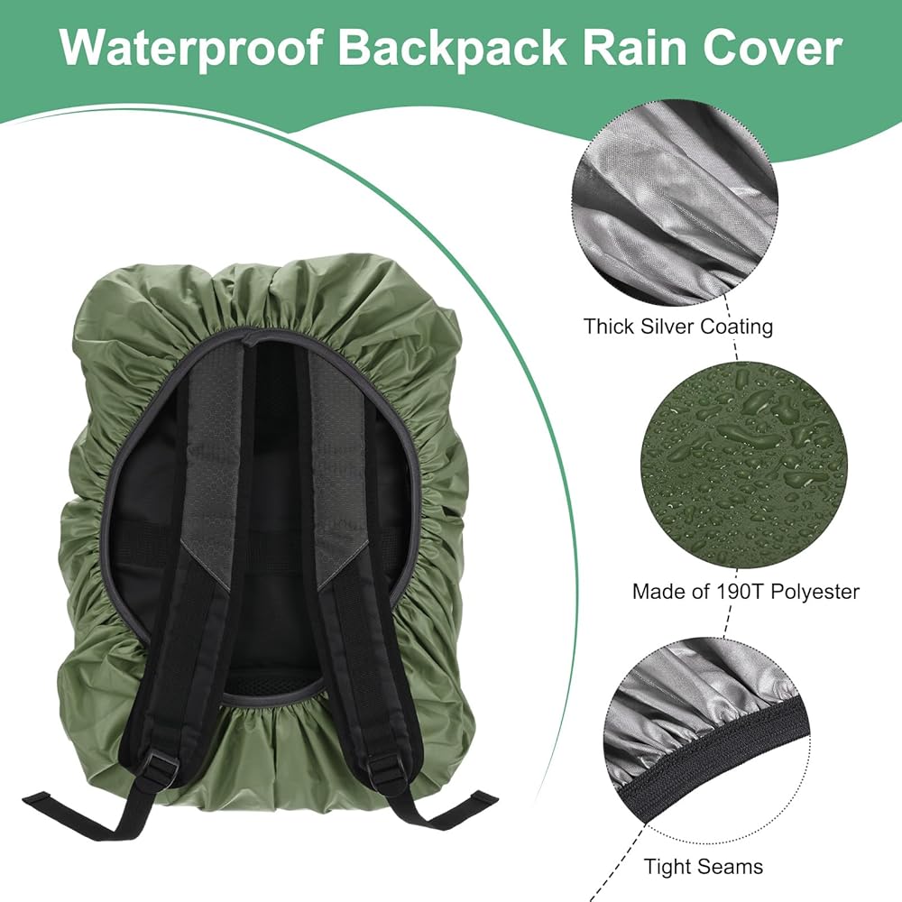 2. Our backpack rain cover is made of 190T polyester, and the inner layer is made of 190T silver-coated thickened material. The waterproof index of the fabric is over 2000, which can prevent outdoor heavy rain and protect your backpack from rain intrusion in heavy rain.